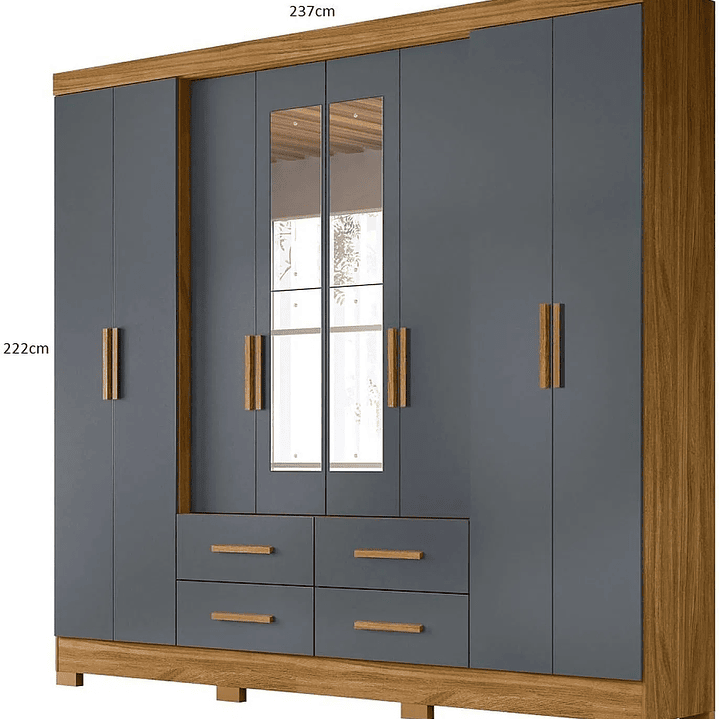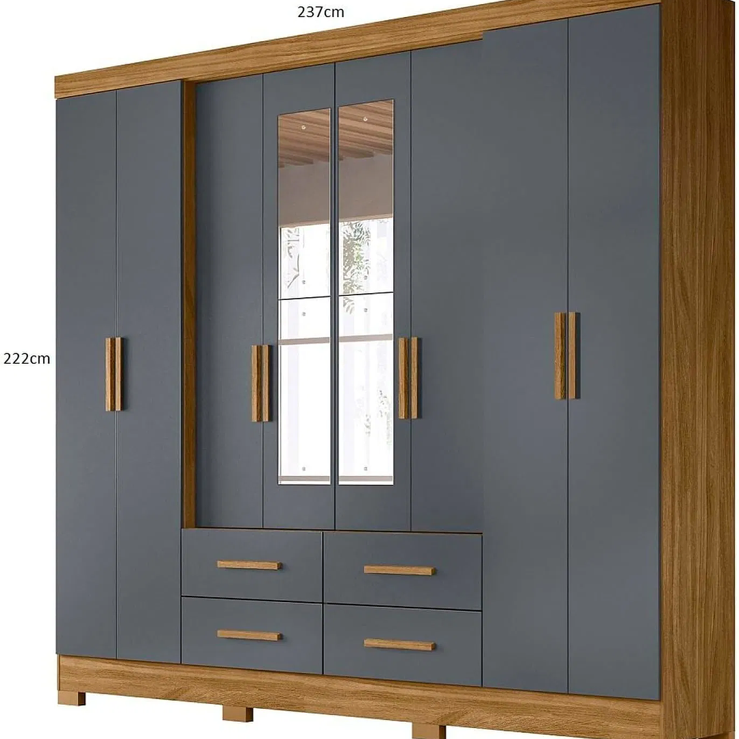Guarda-Roupa Casal Com Espelhos 8 Portas 4 Gavetas E Pés San Lorenzo Plus Freijó/Cinza